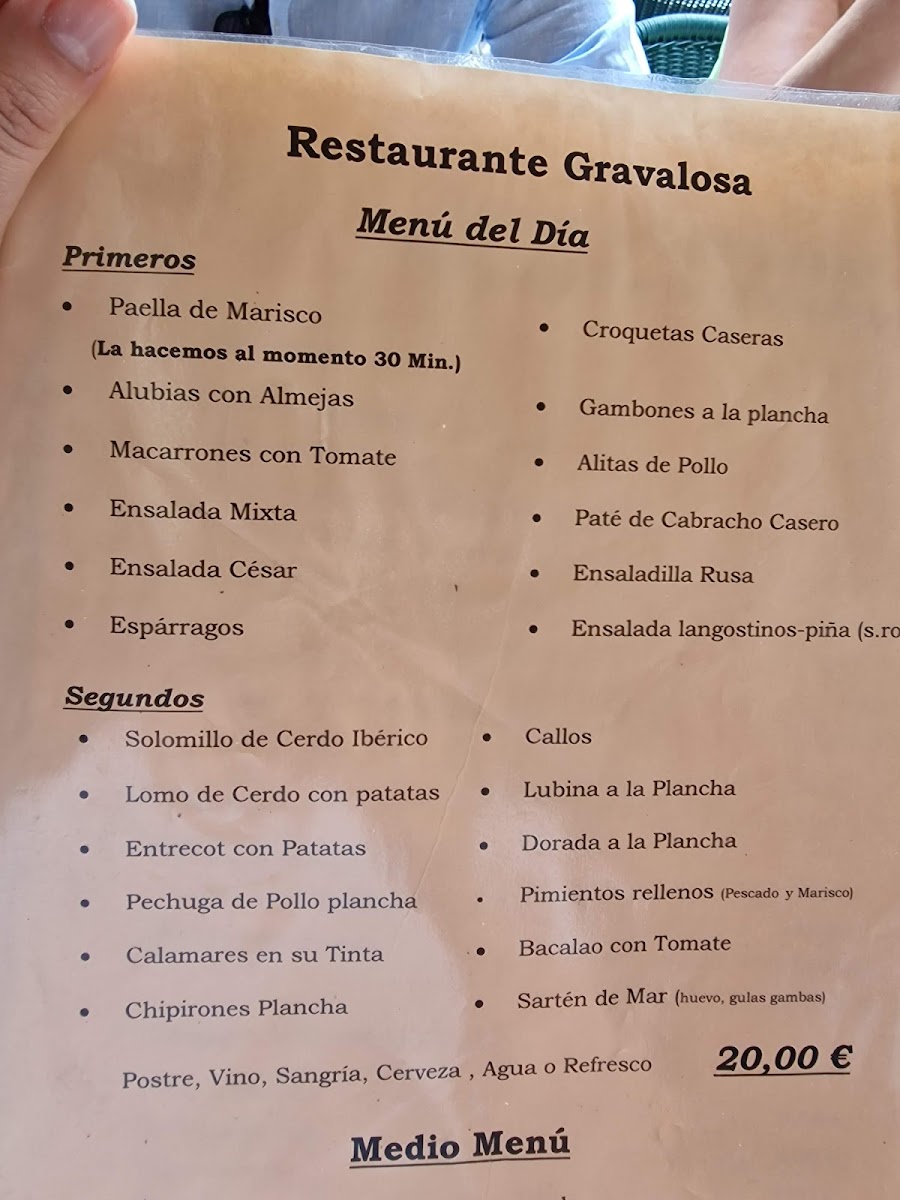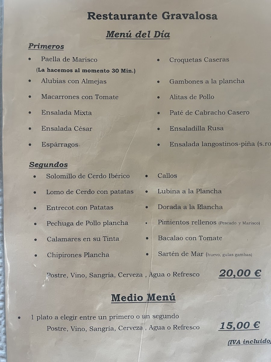 Restaurante La Gravalosa Menu